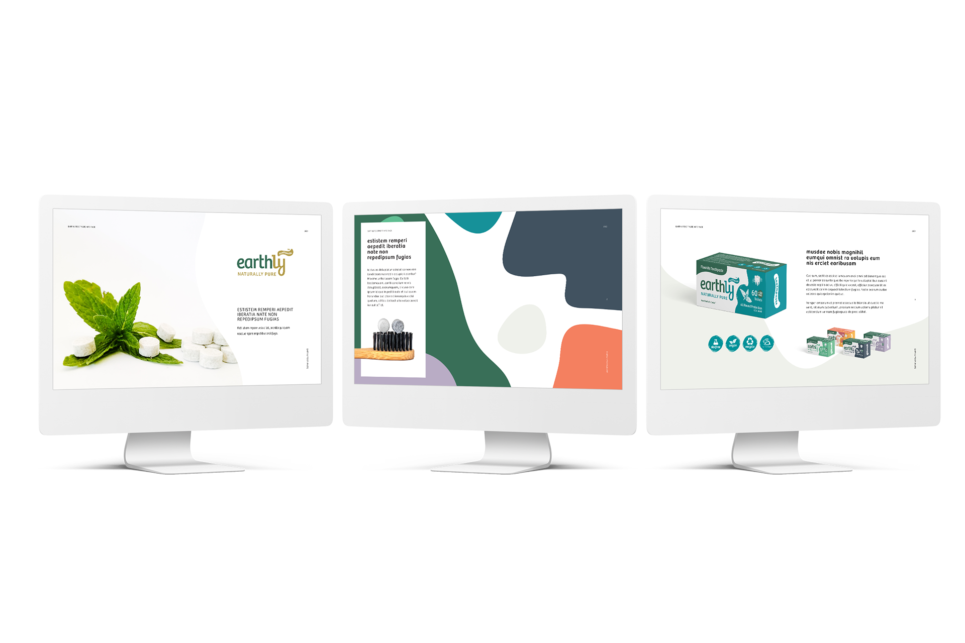 A fresh new identity for a market disruptor brand that sells tooth bits as toothpaste. Environmentally friendly and affordable! Earthly believes oral hygiene is a human right.